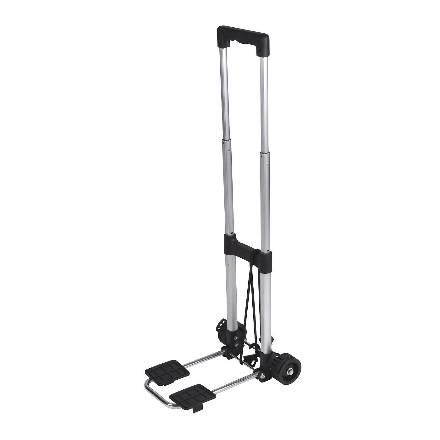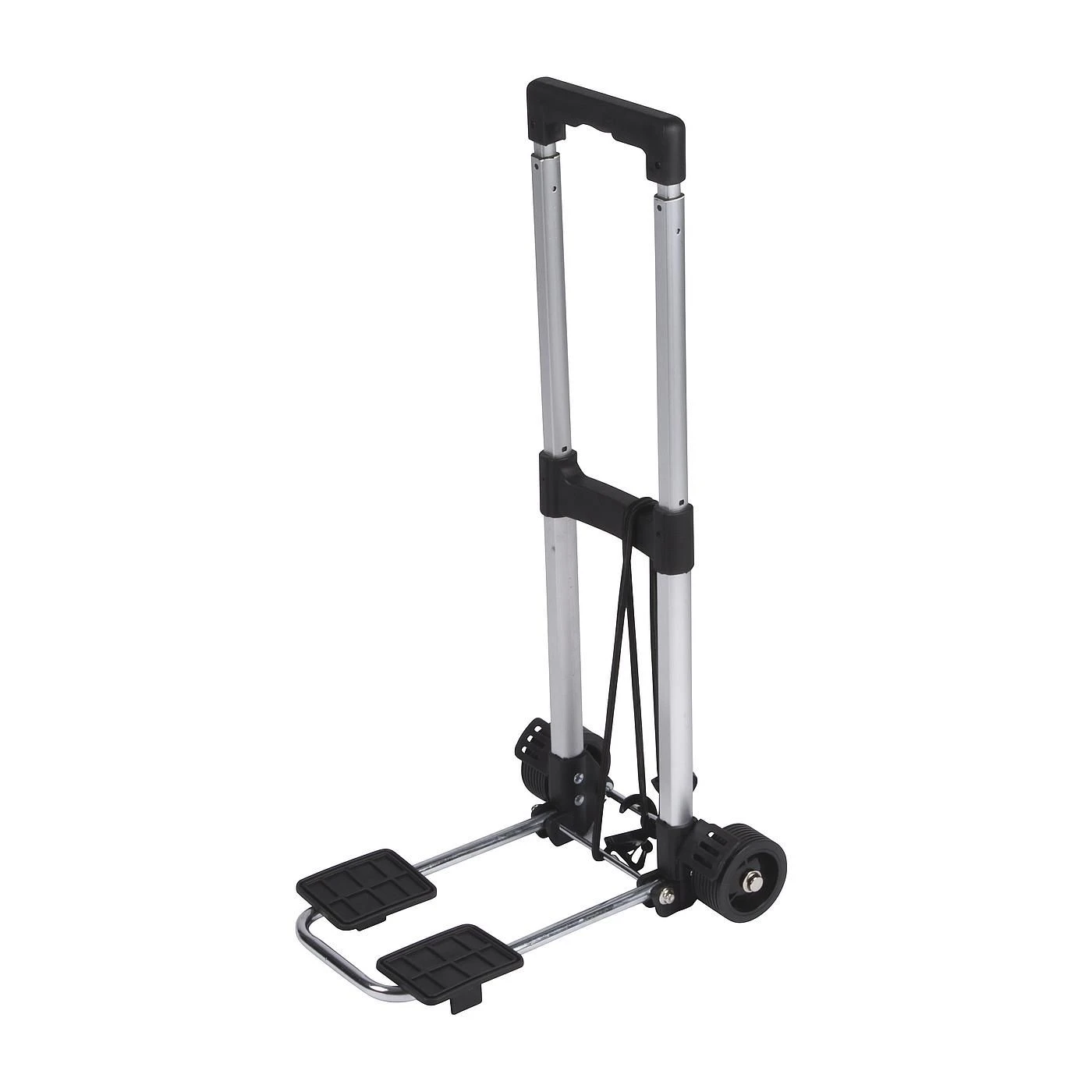 Een zeer compacte en lichtgewicht trolley. Ideaal voor het vervoeren van diverse artikelen als tassen, een vuilwatertank, een jerrycan, vouwkratten etc. Na gebruik is de trolley snel, eenvoudig en zeer compact op te bergen. Dit door het onderste gedeelte in te klappen en het handvat in te schuiven. Het maximaal draaggewicht bedraagt 25 kilogram. Inclusief elastische spin. Ingeklapt (lxbxh): 43,5x27x10 centimeter.