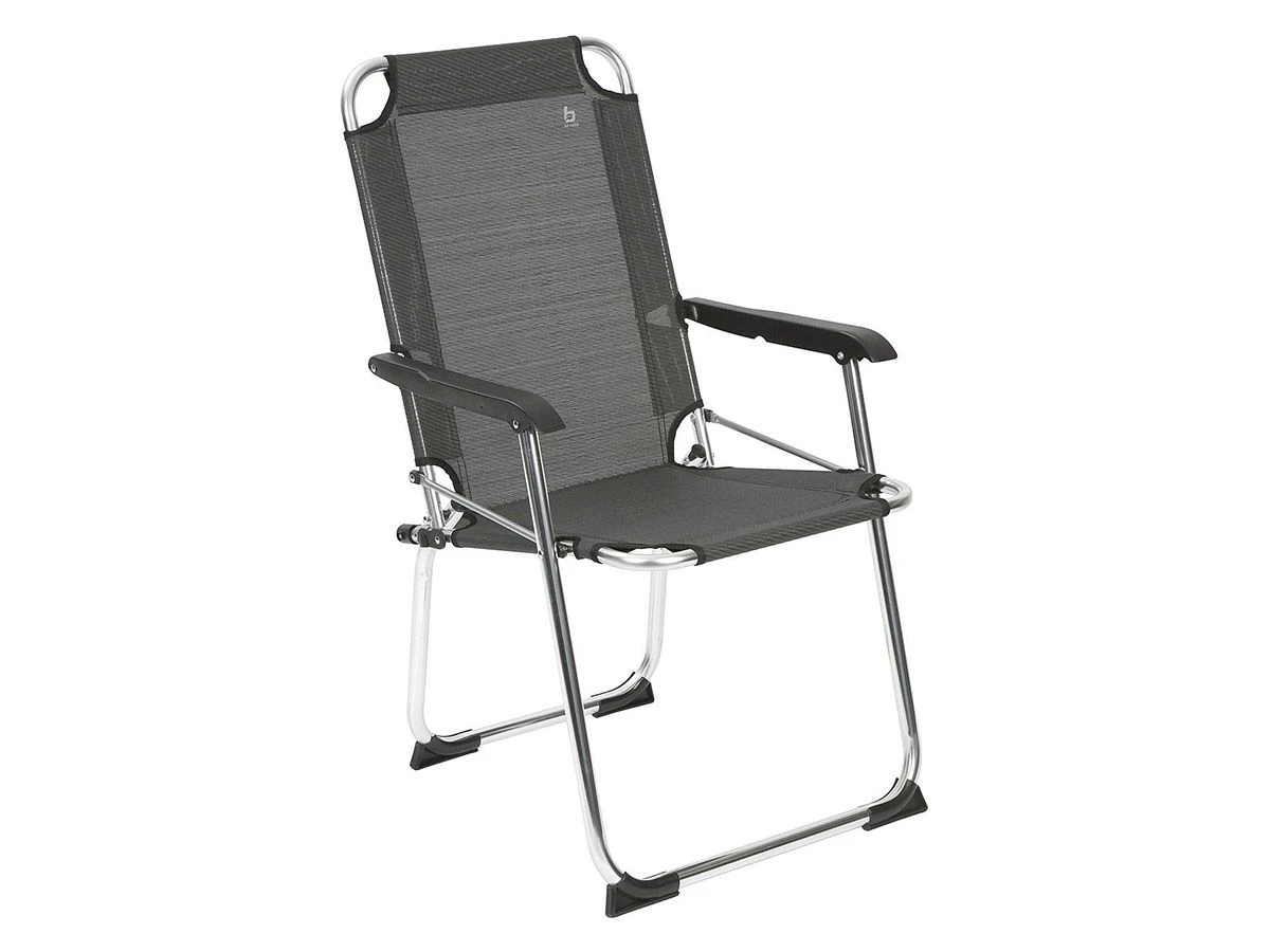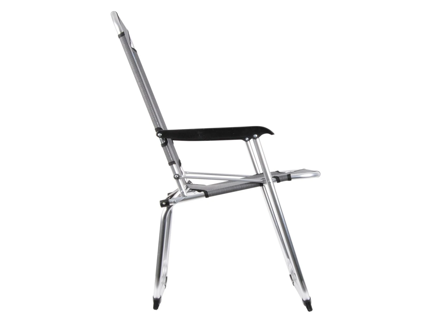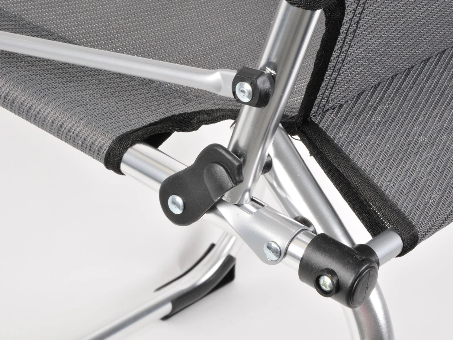 De klapstoel is voorzien van sterke textilene stof en een licht gewicht aluminium frame. Daarnaast is deze stoel voorzien van extra stabilisatoren en een ‘safety-lock’ tegen ongewenst inklappen.