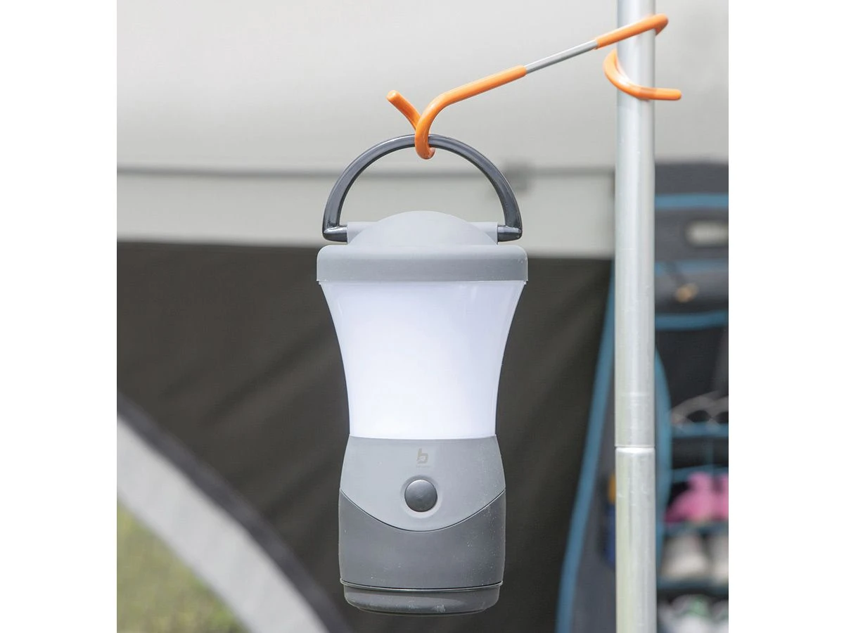 Wil je een compacte campinglamp die je zowel staand als hangend kunt gebruiken? Kies dan voor de Fornacis lantaarn van Bo-Camp! Deze modern vormgegeven tafellantaarn is voorzien van een inklapbaar hengsel en een high power LED die verstelbaar is in drie standen (30%, 60% en 100%). De matte witte kap zorgt voor een warme lichtkleur.