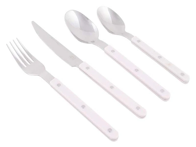 Een kleurrijke 16-delige bestekset uit de Pastel collectie. Dezeset is geschikt voor 4 personen en bestaat uit 4 messen, 4 vorken, 4 lepels en 4 kleine (thee) lepeltjes. Gemaakt van roestvrij staal met een kunststof heft en de set heeft hierdoor een lange levensduur.