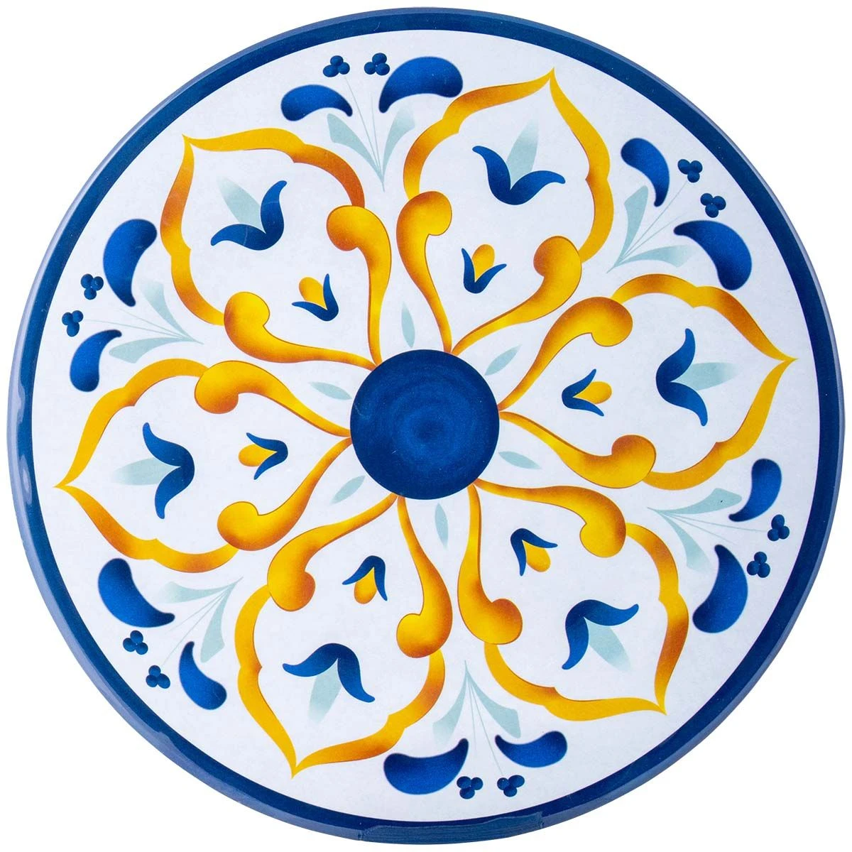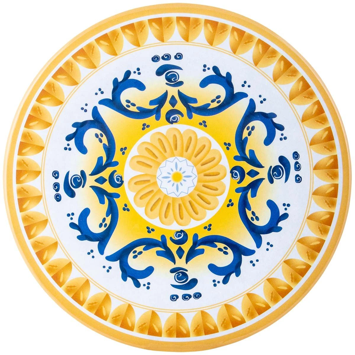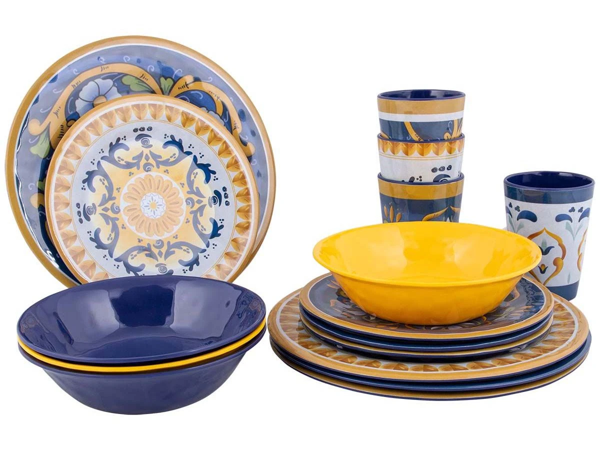 Een sfeervol 16-delig serviesset met siciliaanse stijl. Het servies is gemaakt van 100% melamine. Melamine servies is vrijwel onbreekbaar, zeer licht van gewicht, kraswerend en vaatwasmachinebestendig. Geschikt voor 4 personen en bestaat uit 4 dinerborden, 4 ontbijtborden, 4 kommen en 4 mokken. Ideaal voor mee naar de camping of in de tuin. Food approved. Afmetingen: Ø Dinerbord: 26,5 cm. Ø Ontbijtbord: 21 cm. Kom: 600 ml. Mok: 400 ml. Deze serviesset is perfect te combineren met waterglazen 6101331 en wijnglazen 6101336.